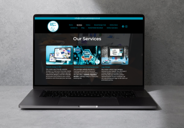 At Custom Web Designs, we specialise in bespoke websites and branded content that elevate your business. From logo designs to video reels, business cards (design only), and scroll-stopping digital leaflets, we craft assets that connect, convert, and endure. We also provide complete website services — from domain registration to secure, high-performance hosting.