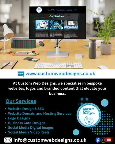 Custom web designs built for every business. Whether you're in trades, retail, or services, we create digital spaces that showcase your expertise. From eye-catching before-and-after content that brings your projects to life, to professionally designed leaflets that amplify your message β we help your business grow online and beyond.